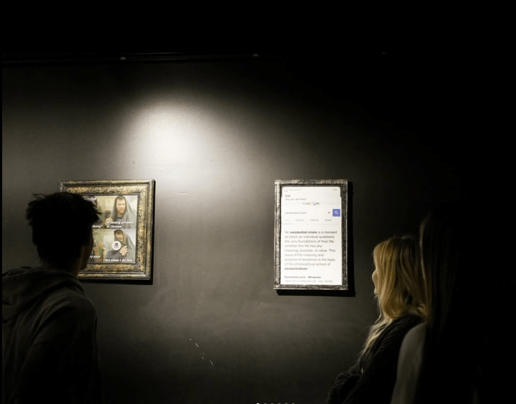 This exhibit decelerates digital culture. By removing memes from their algorithmic stream and presenting them in physical space—as printed, framed, thematically grouped artifacts—it reorients the viewer. Without the option to scroll past, audiences must sit with each image. Patterns emerge. Narratives cohere. The memes start talking to each other.